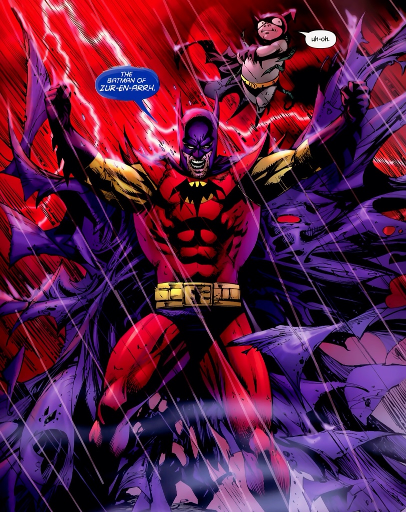 In an earlier storyline, ‘Batman R.I.P.’ Morrison showed Batman on the verge of death, tipping into a total breakdown (see the Zurr-en-Arrh images above). To accompany him into the abyss, Morrison re-introduced the much derided Batmite character from the old 60s cartoon series. It was an inspired moment of lunacy, and one that sent me back to a couple of equally unhinged Batmite titles from the 90s by Brit comic geniuses Alan Grant and Kev O’Neill.