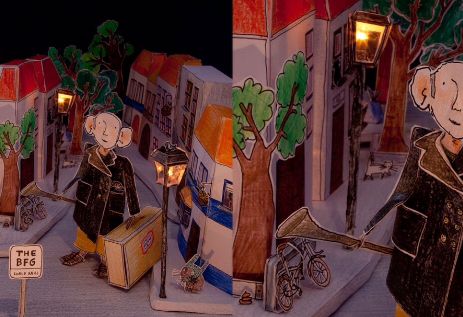 As a daughter of a printer I acquired at a fairly young age a love for paper (it’s texture and smell!), and the many creative ways of using it. Building up an illustration as a complete set in a cardboard box, the aim is to end up with a composition in which the shadow is nearly equally important as the actual characters.”
