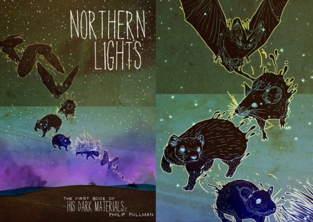 ”The idea of adapting books into my style really appeals to me (I’d love to adapt a novel into a graphic novel one day) but the image I made is unlike anything I’ve drawn before. Northern Lights has so many amazing and varied ideas, it was really tricky choosing just one moment or character that could do the entire book justice. By drawing the character of Pan, I was able to not only represent one of my favourite characters, but also the fantastical idea of Daemons and their transformations which hopefully helps establish the world to the reader.”