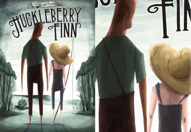 “I chose Huckleberry Finn because Tom Sawyer was a friend of mine when I was a child. Seriously, this book brings together all the important values to me in life, such as friendship, adventure, nature, and free spirit against the choices imposed by adults. I see more clearly the political views in it now that I’m an adult. But I prefer to keep in mind the spirit of escape and freedom that brought this book. I let down my usual cartoon style to fit more with the beautiful pictures of nature that Mark Twain painted in my mind with his words. I draw it with a free spirit and had a little touch of melancholia and nostalgia with the faded colours and old style title. But I also had a touch of light to show the hope and freedom that will always come under our feet.”