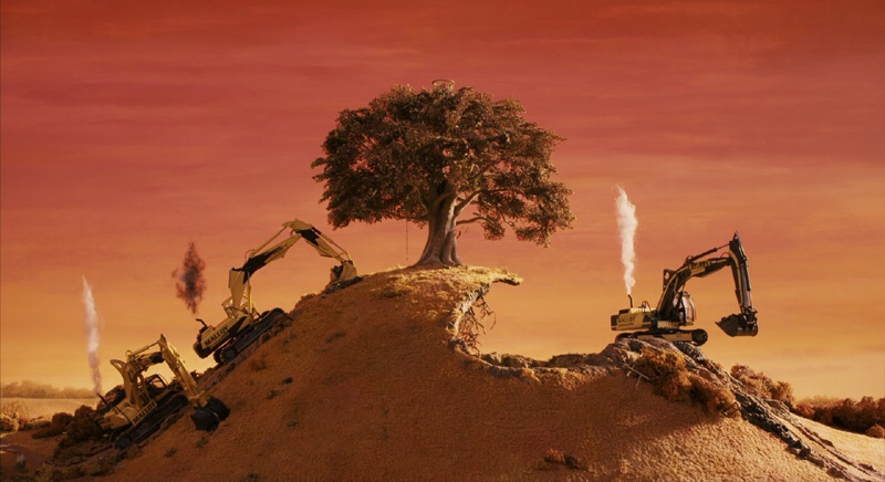 In Dahl’s own Caedmon audiobook reading of Fantastic Mr Fox, he verbalises the condition of the hill at each stage of the race between the foxes and the nasty farmers. He describes the first pictures as “In the beginning, the hill looked like it always used to look” and continues with “After about an hour…one half of the entire hill had disappeared.” By lunchtime, “the hill had now completely disappeared”. The last picture is described thus: “By five o’clock in the afternoon, in the place where the hill had once been, there was now an enormous deep hole. It was like the crater of a volcano…”. Rather than rely on our own interpretations of the pictures, we can take guidance from Dahl’s own reading.