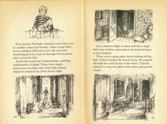 ‘It’s Too Frightening For Me’ is a story about two brothers unable to resist poking around a dark house. It provides the scares, but retains Shirley Hughes’ wonderful empathy for her characters. You get a real sense of the boys’ fear as they try to put on a brave face, pushing themselves that bit further each time they return to the house.