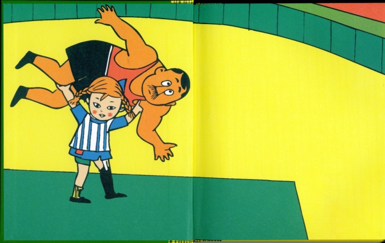 Despite being the strongest girl in the world she rarely has to resort to picking people up. Her great power is in bamboozling grown-ups with her remarkable lateral thinking. In Pippi Organises a Quiz we see her outfoxing a bullying old woman set on humiliating the town’s more ignorant children.