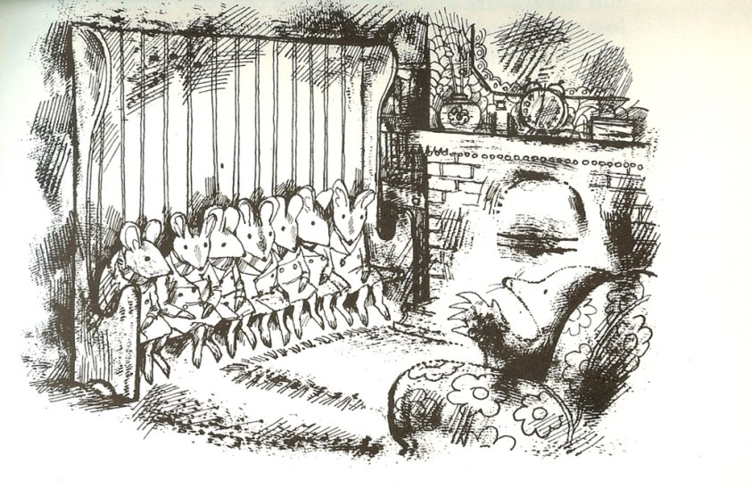 If you find Walter de la Mare’s tale of the three wraithlike traitors (Herod, Pilate and Judas) just a bit chilling, then the extract from Kenneth Grahame’s Wind in the Willows will warm you through. In Christmas Underground we find Mole and Rat as they take shelter in Mole’s long forgotten home in the middle of the wild woods. A group of carol singing field mice come to call, and although there’s no ‘Pâté de Foie Gras, no champagne!‘ on offer, there is a roaring fire and a jug of mulled ale. It’s fantastic to see the Raymond Briggs version of this lovely Christmas interlude, who wouldn’t want to take sheleter in Mole’s cosy little bolt hole?