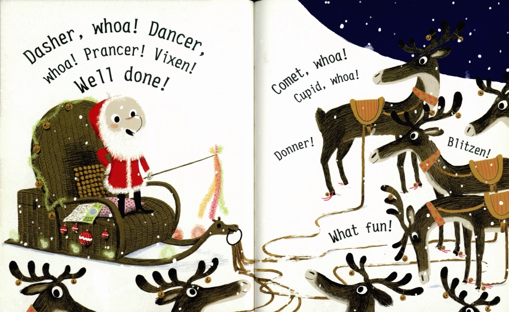 Another Night Before Christmas by Poet Laureate Carol Ann Duffy is a sensitively updated re-imaging. The references aren’t quite ‘Strictly’ specific, so it manages to retain its timelessness. Helped by the mid century stylings of French illustrator Marc Boutavant who adds plentiful witty touches like the satellite dish manned by a dog.