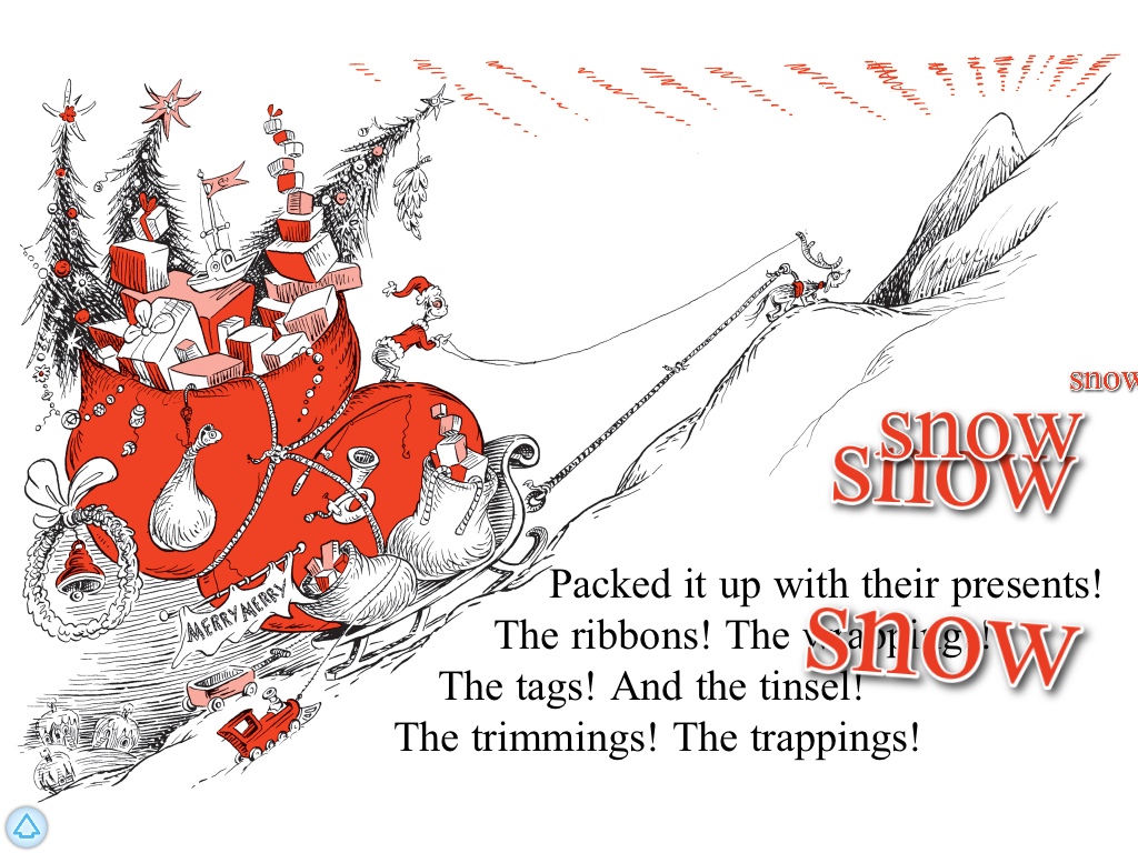 The Grinch Who Stole Christmas continues the Dr Seuss domination of the Children's book app market. Their success is well deserved, presenting pretty much everything you'd want from a picture book app.
