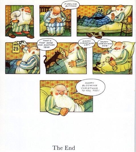 It’s not just that Briggs takes the benign Saint Nick and turns him into a grumpy old man who doesn’t even like his job, he also makes him human, and a working class human at that, taking inspiration from his own father.