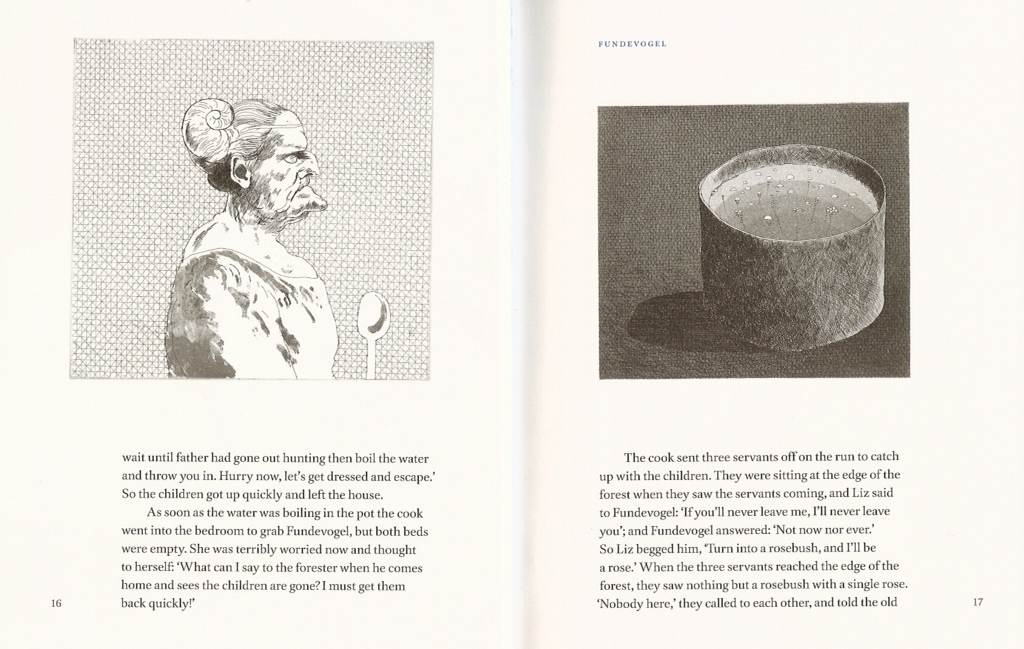 We begin with a little gem by David Hockney that I picked up in Soho picture book mecca Gosh! a few weeks ago. Six Fairy Tales is a mixture of well known classics like Rumplestiltskin (or Rumplestilzchen as it appears here) and ones I hadn't heard of like Fundevogel.