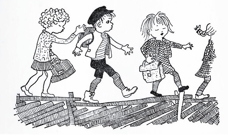 Lindgren has that great ability, shared by all great children’s writers, of having not only a memory, but an understanding of what it was like to play as a child. The illustrations capture this beautifully. The original editions by visionary artist Ingrid Vang Nyman are just stunning. We’ve seen her quirky depictions of children’s fun and games before in Pippi Longstocking, but here there’s the extra dimension of the natural world to play with, introducing a new cast of stylised birds, cows and annoyed looking rats.