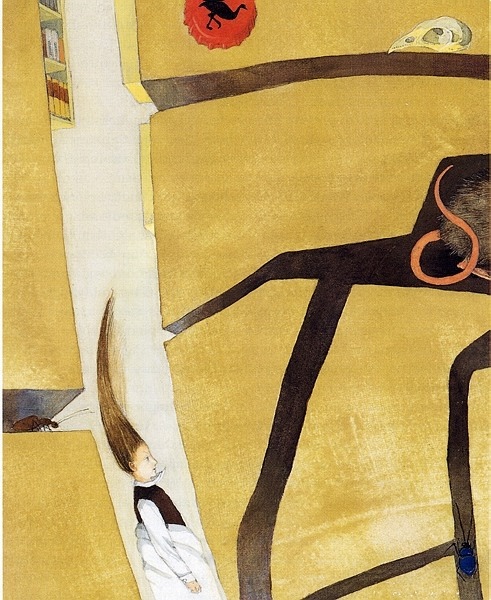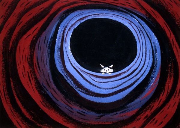 The rabbit-hole went straight on like a tunnel for some way and then dipped suddenly down, so suddenly that Alice had not a moment to think about stopping herself before she found herself falling down what seemed to be a very deep well.