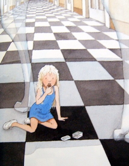 She took down a jar from one of the shelves as she passed. It was labeled “ORANGE MARMALADE,” but, to her great disappointment, it was empty; she did not like to drop the jar, so managed to put it into one of the cupboards as she fell past it.