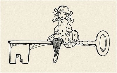 After awhile, finding that nothing more happened, she decided on going into the garden at once; but, alas for poor Alice! When she got to the door, she found she had forgotten the little golden key, and when she went back to the table for it, she found she could not possibly reach it: she could see it quite plainly through the glass and she tried her best to climb up one of the legs of the table, but it was too slippery, and when she had tired herself out with trying, the poor little thing sat down and cried.
