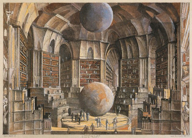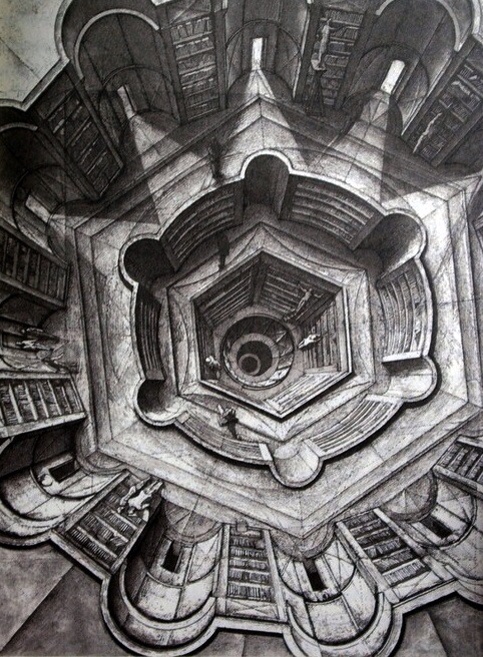 Most of the pictures in this piece are taken from Jorge Luis Borges’s The Library of Babel, illustrated by Érik Desmazières.