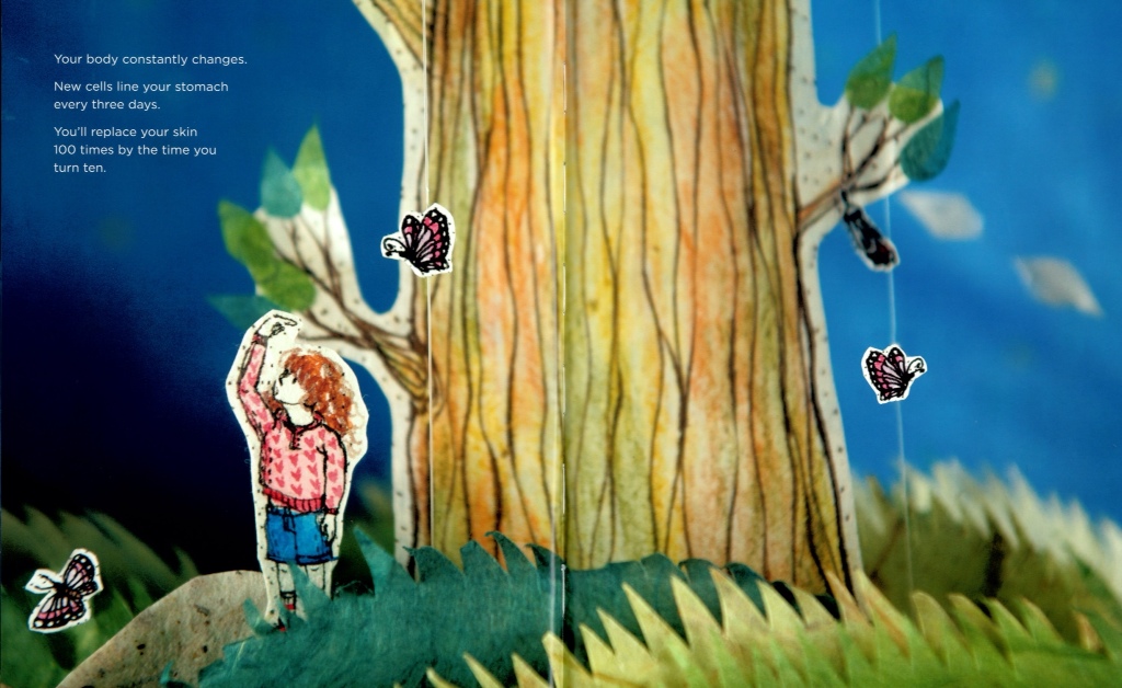 We learn that we are not simply born and then we die, but that our bodies are continually dying and renewing themselves. 'Your body constantly changes. New cells line your stomach every three days. You'll replace your skin 100 times by the time you turn ten. Just as forests grow new trees in place of old ones, you grow entirely new skeletons throughout your life.'