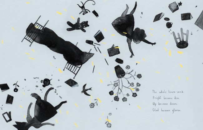I needn’t have worried really. Although I didn’t actually understand large chunks of Fanny Britt’s text, the illustrations of Isabelle Arsenault told the story with such flourish that I don’t think it mattered. So forgive me if this little précis isn’t entirely accurate.