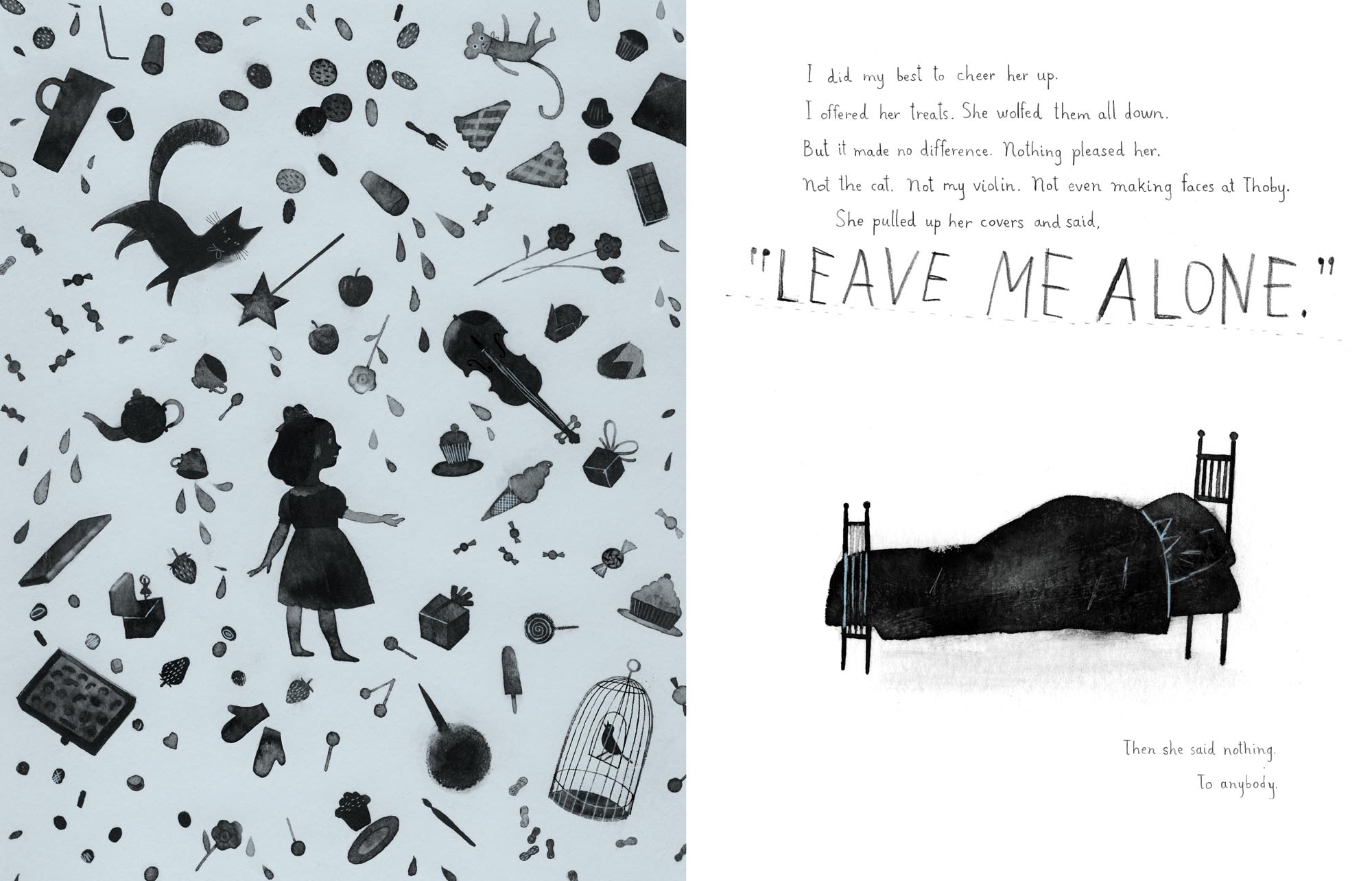 But unlike poor Helene, Virginia has an understanding sister to comfort her. Vanessa is also cast in silhouette for much of the story, but we still see the concern written on her face in simple blue pencil lines. The bond between the pair is quite beautifully captured – to the extent that it made me sad that my own daughter didn’t have a sister like Vanessa to confide in.