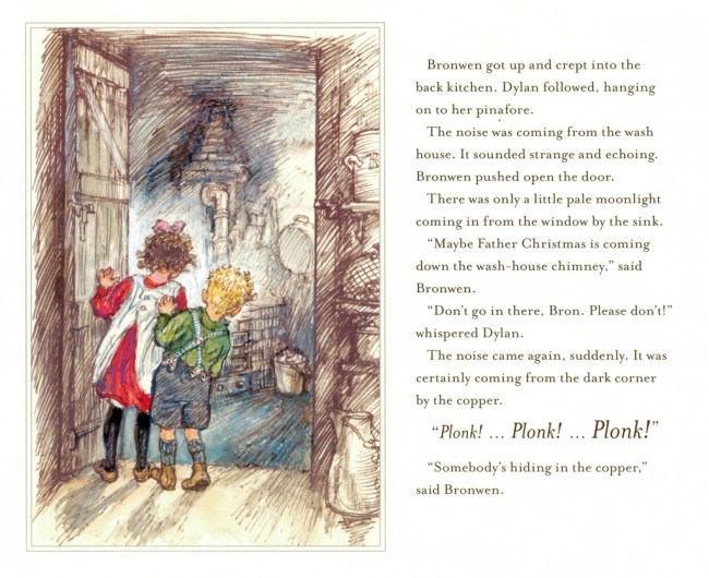 She might not be able to afford a lavish Christmas, but Bronewn and Dylan’s Mam can tell a mean Christmas ghost story. So much so that come Christmas Eve, while she pops out to run a few last minute errands, the children begin to wonder whether a noise from the wash house is Father Christmas trapped in the boiler or something more sinister.