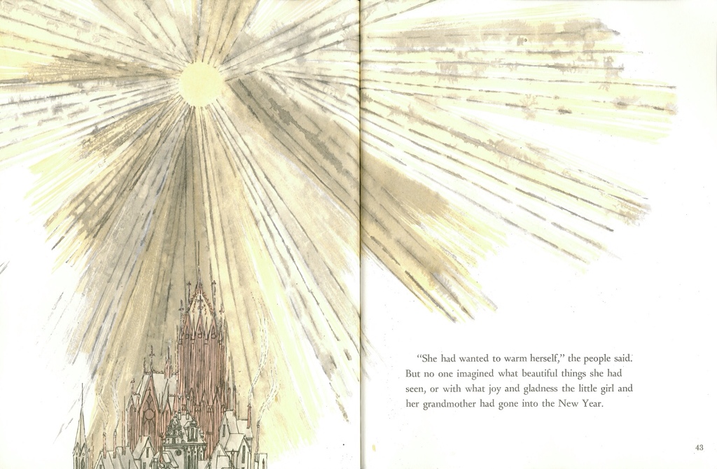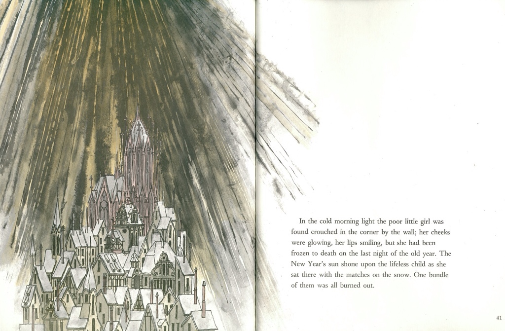 Now it says in the dust jacket to this 1968 edition, illustrated by Blair Lent, that this book 'speaks plainly to children of sorrow and redemption.' I don't know about that, but it does have a powerful message about how many children still suffer like the match girl every Christmas. And it's for that reason that this unsentimental story retains a special place in the canon of mostly glittering christmas books for children.