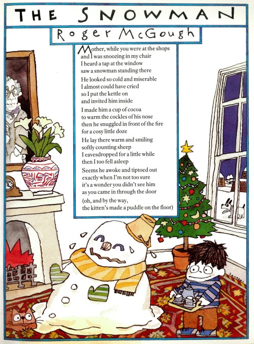 There's a fantastic poem called The Snowman, a sly take on the Raymond Briggs classic by Roger McGough. Just look at that angry red fire, the poor fella doesn't stand a chance.
