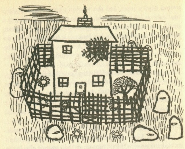 The picture she draws is of a childish house complete with four windows and a plume of smoke rising from the chimney. It is surrounded by long grass, a few flowers and some lumpen rocks. The pencil it turns out might be magic, as that night Marianne dreams of the house.
