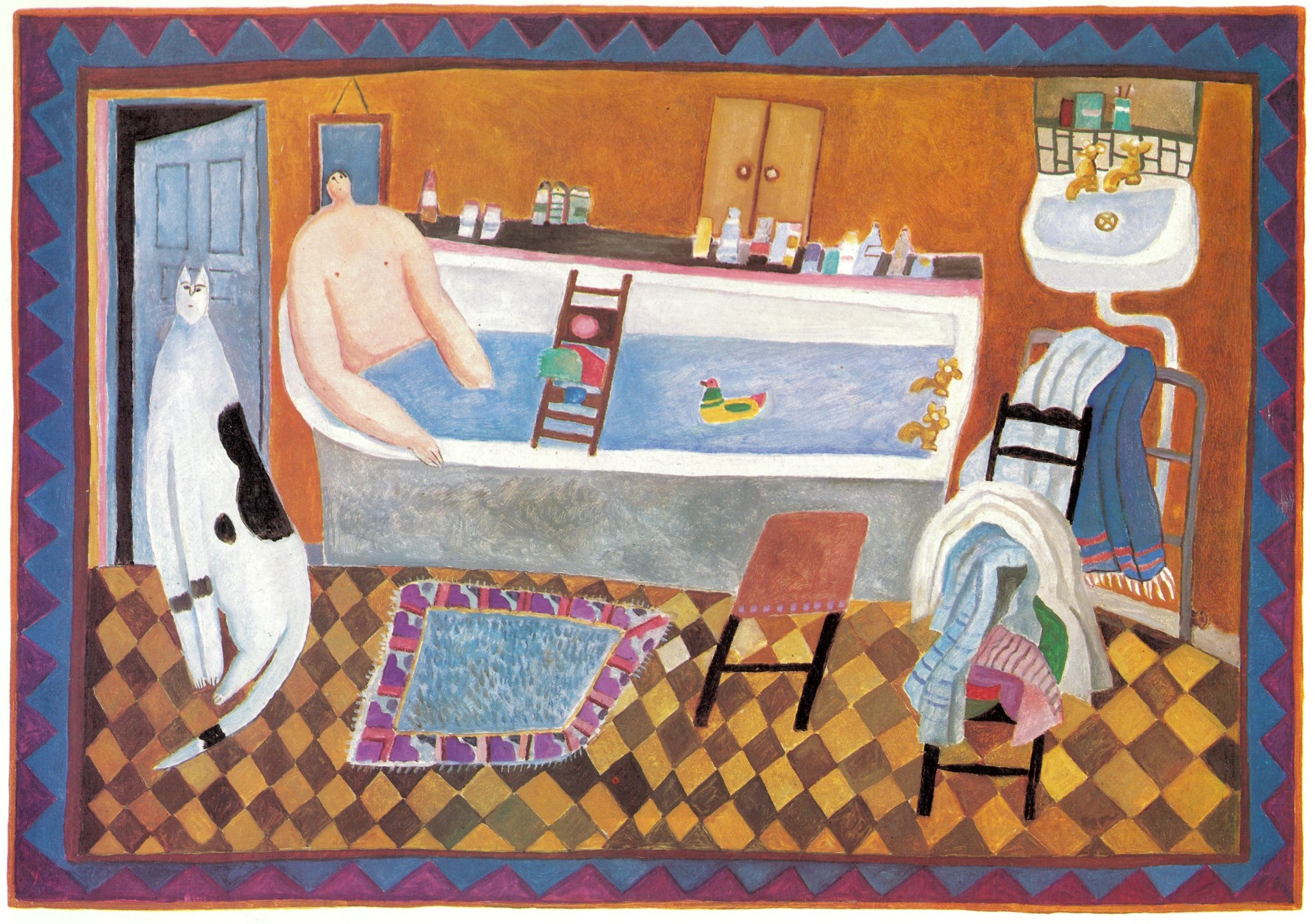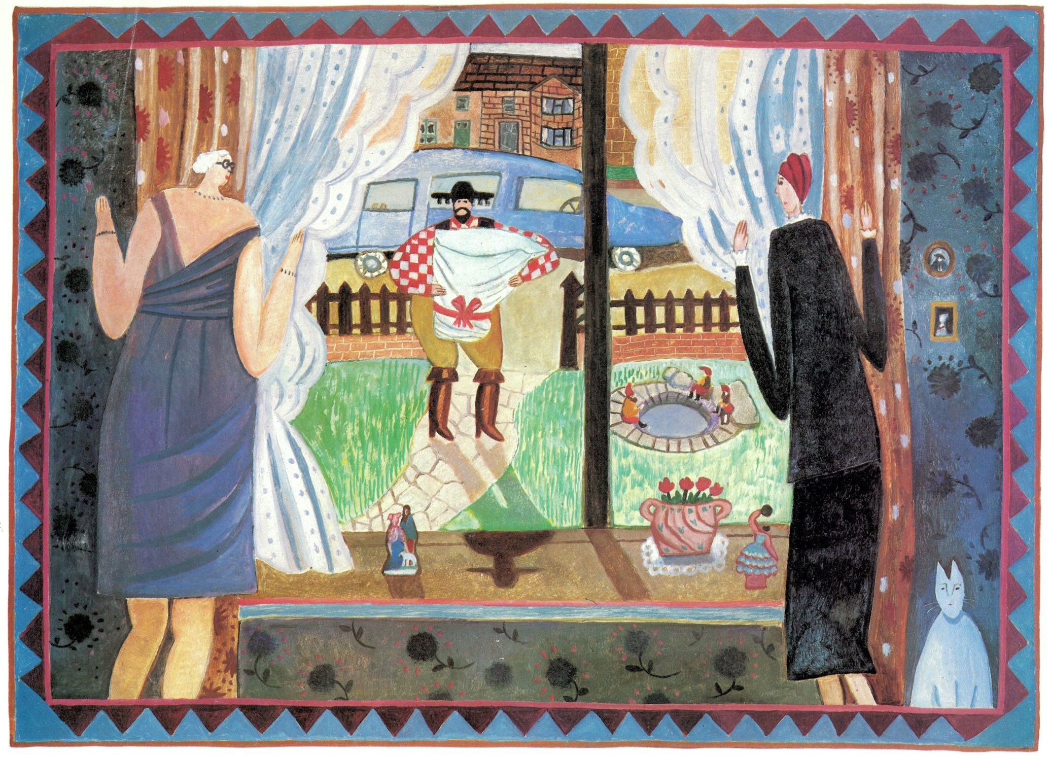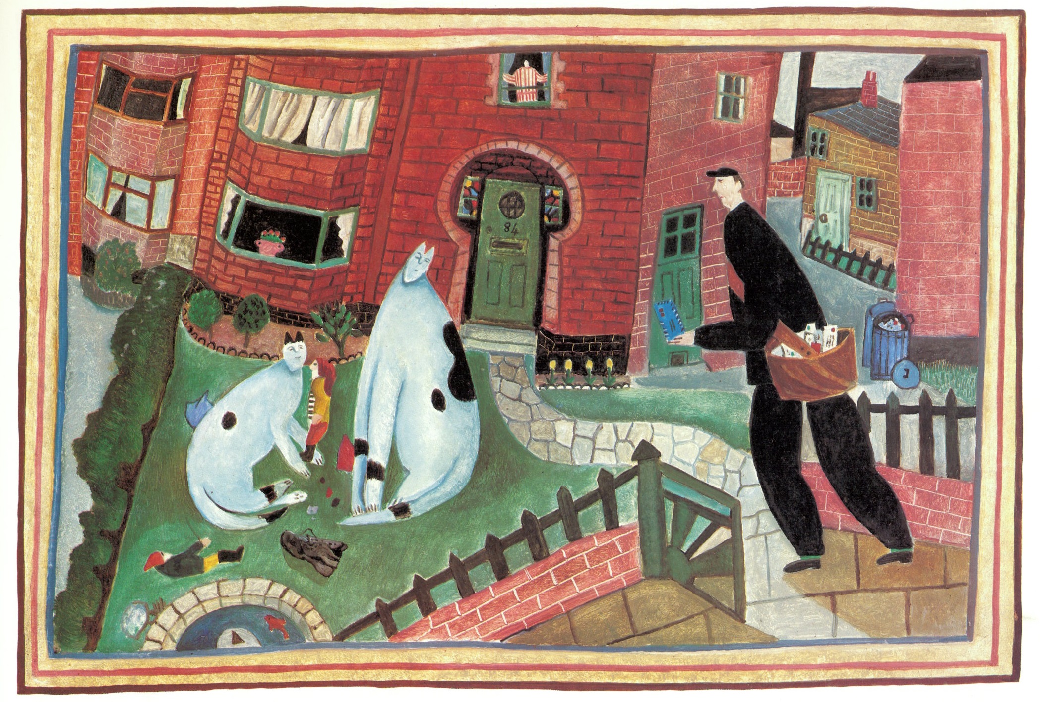 These gargantuan pets and their pin headed owners are in fact the creations of the artist Joanna Carrington, the hugely respected fine artist who was the niece of the Bloomsbury group’s Dora Carrington. Reginald came about after a bout of artist’s block, his naive style allowing her to approach painting in a new way. The freedom it offered is evident in these works and there’s real joy to be found in this children’s book spin off published in 1984.