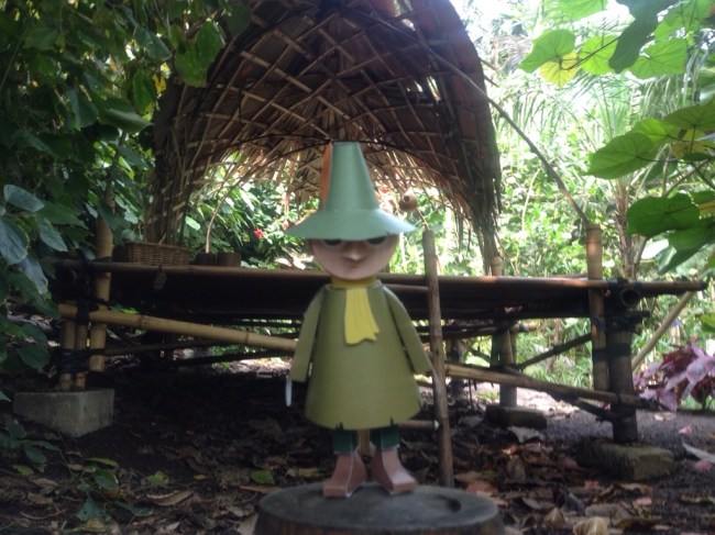 The Moomins and I have been on our holidays. Not on the Riviera, but to Cornwall and the Eden Project. Paper Moomintroll, Little My, Snuffkin and the Hattifatteners travelled with us from the sunflower soaked fields of southern France to the bountiful rain forests of Malaysia, before encountering their ‘ancestors’ in deepest Africa.