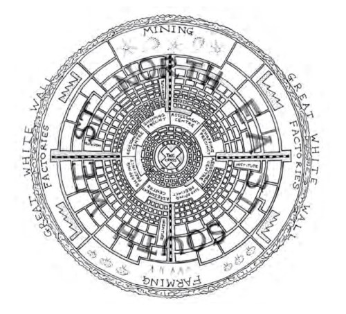 The setting for ‘Land’ arrived in my head half-formed already and then I just walked around it, looking at all the different roads and areas and checking out all its detail. It wasn’t until I had the place ‘Land’ clearly drawn out in my head, that I started to map it out on paper with words.