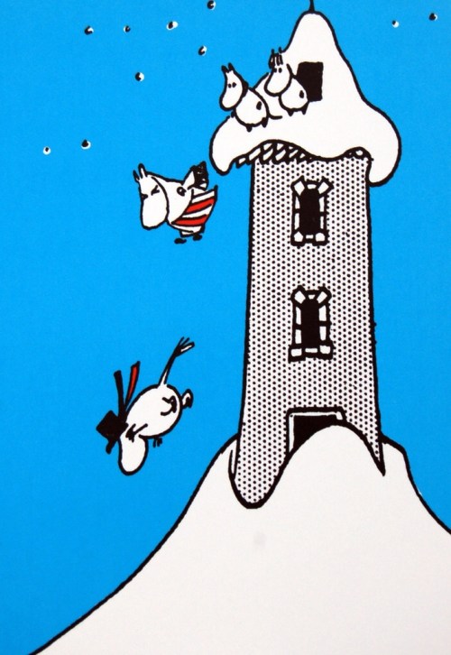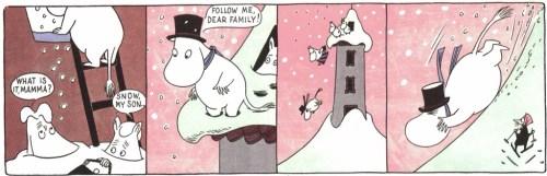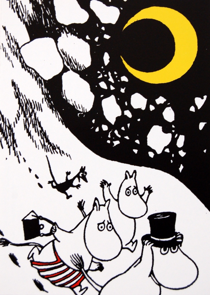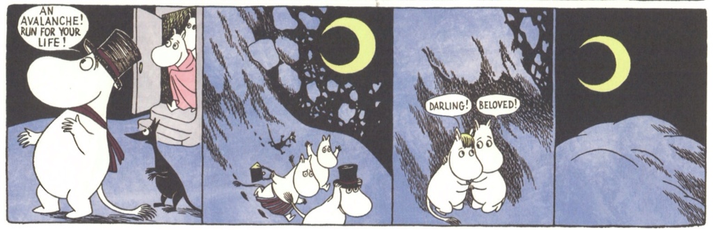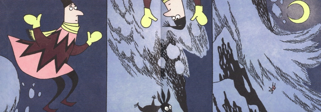 And while we’re looking at Moomin’s Winter Follies, here’s the brilliant moment when the ridiculous skier who bothers moominvalley in the snow causes an avalanche. Tove really was a devestatingly good cartoonist.