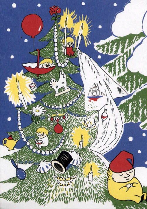 And finally here’s a variant on the final scene from last years pick for advent, The Fir Tree, which sees the Moomins abandon their Christmas tree, leaving it to the deserving woodland folk.