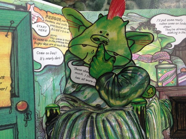 A novelty tie in of a much loved children’s book normally means a poorly stitched soft toy stapled to the front cover, or perhaps a collection of screen grabs taken from a lacklustre animated movie with text written by somebody in the publicity department. In the case of the Fungus the Bogeyman: The Plop-Up Book, none of this applies.