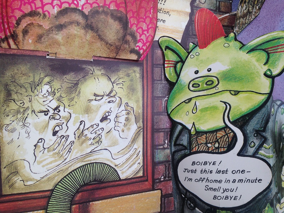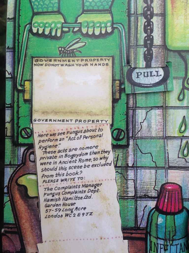 In the Plop-Up Book the cord is rendered in three glorious dimensions, bursting out of Fungus’s open shirt and through the open window of two unsuspecting humans. ‘The principal purpose of the cord is to discharge noxious stomach gases into bedrooms’.