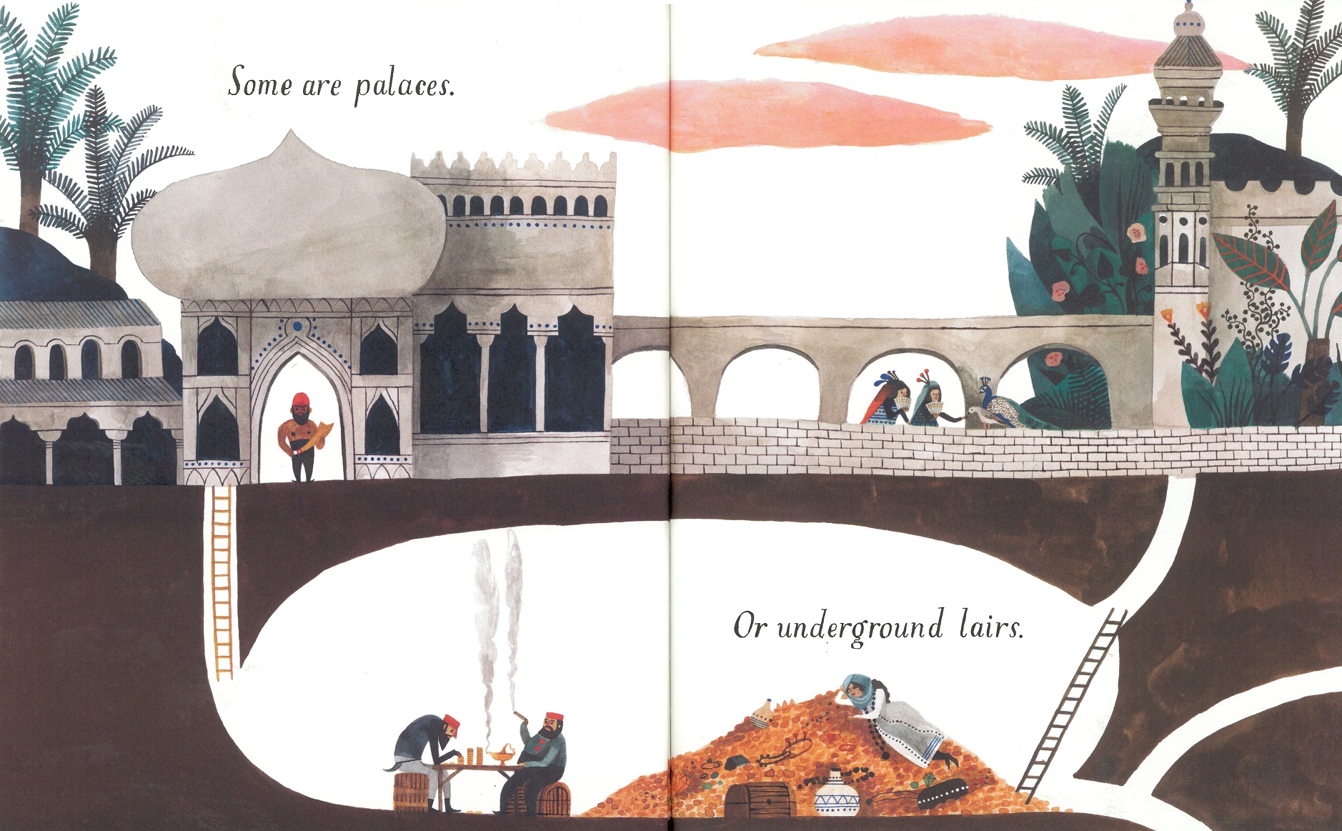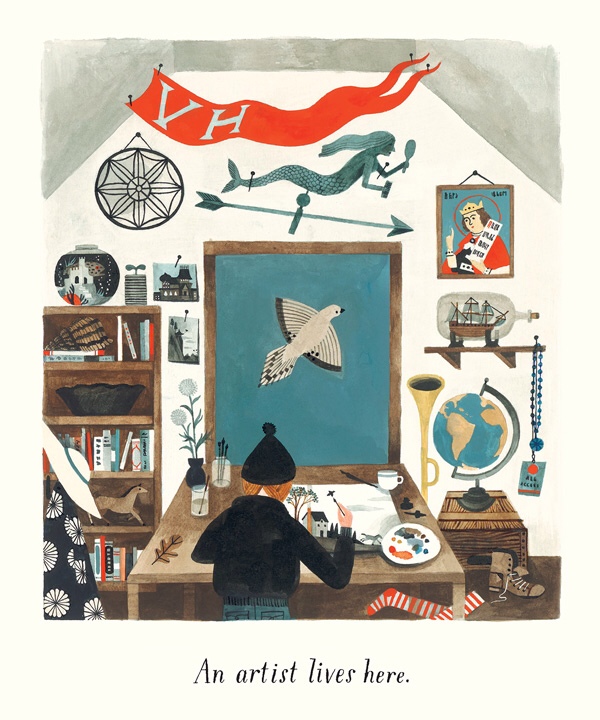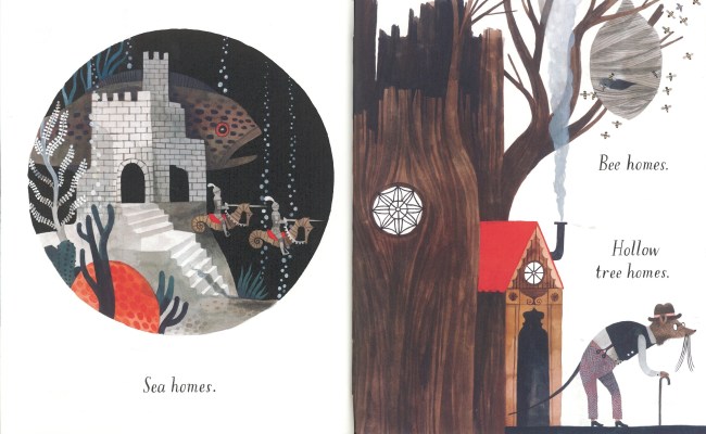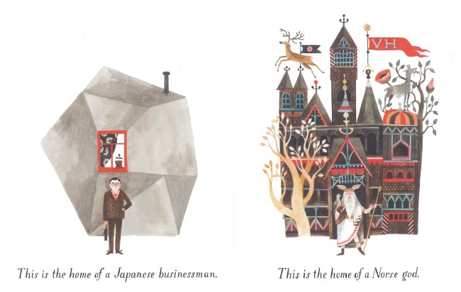 Home, is the long awaited first solo title by Carson Ellis, the American illustrator and co-creator of the Wildwood books. It’s a subject that’s close to her heart – writing on the Picture Book Makers blog she says, ‘I love to draw homes because I love architecture. I love drawing buildings and all their angles and shingles and nailheads. I also love to draw homes because they naturally suggest narratives about the people (or what-have-you) who inhabit them. And I love to draw them because our own homes mean so much to us.’