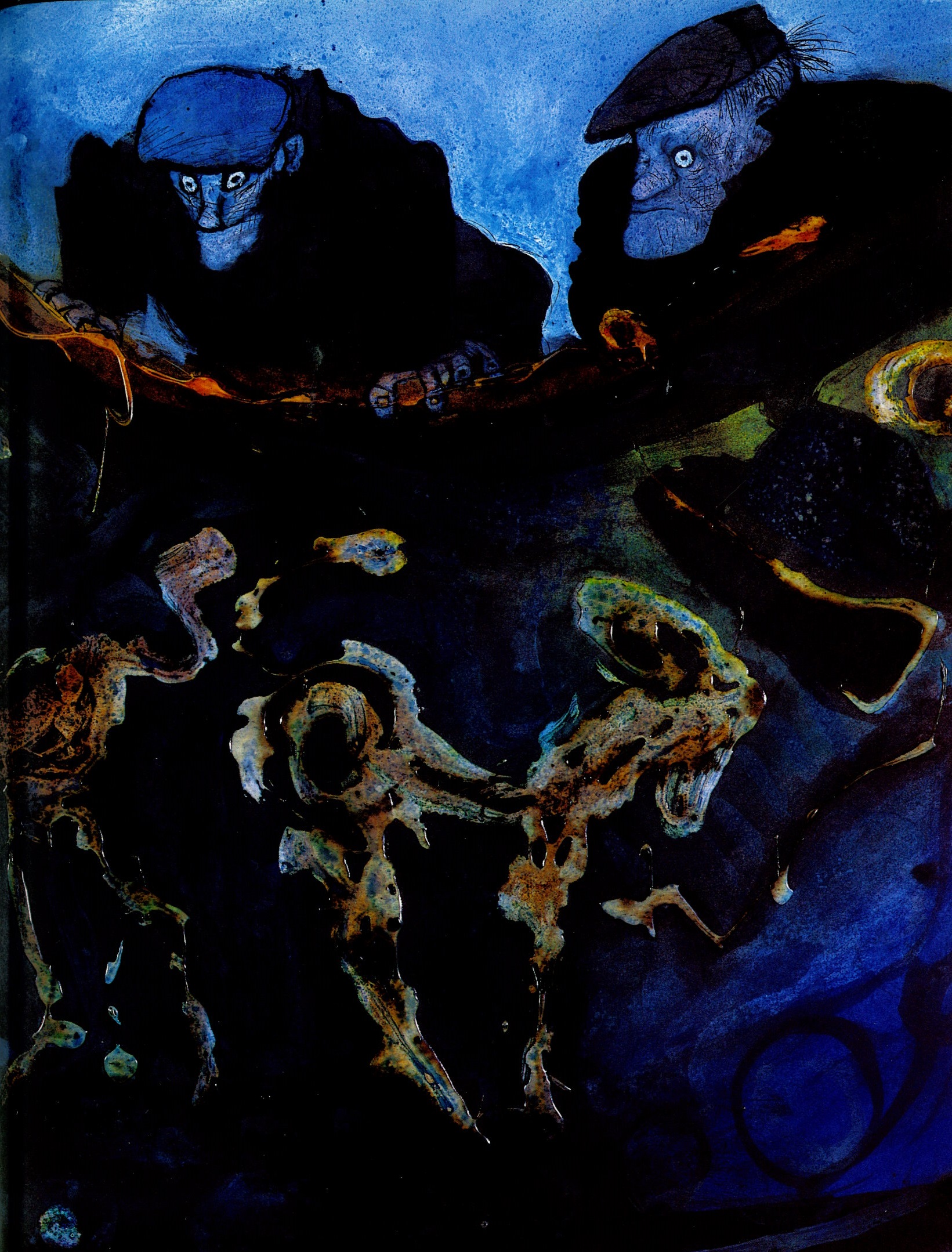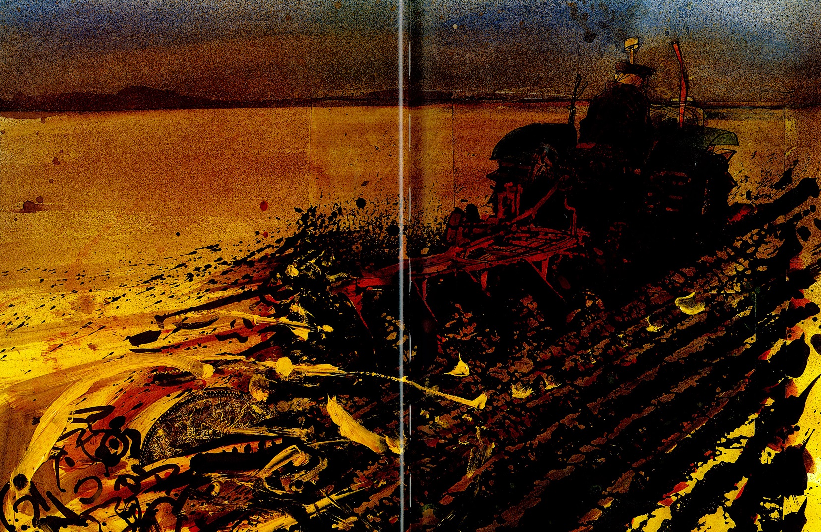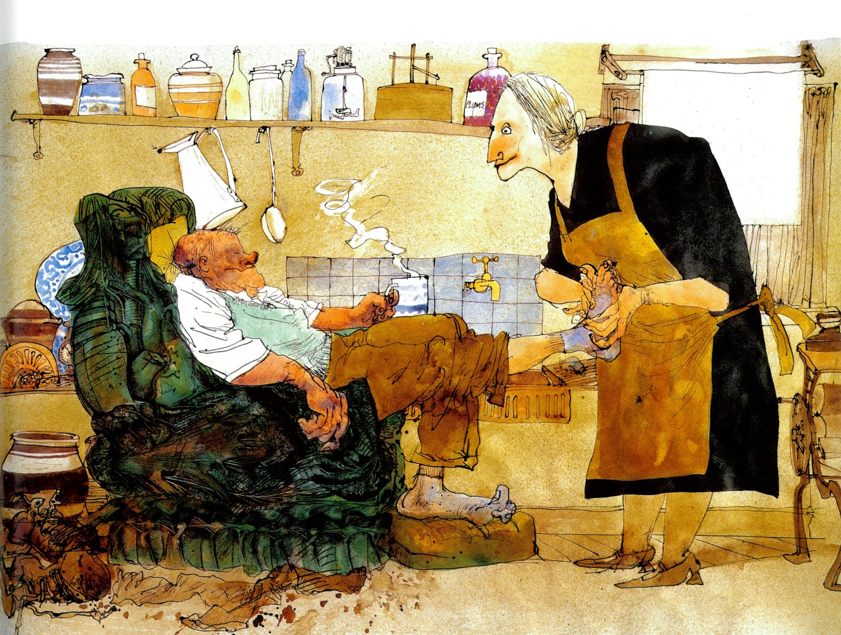 It’s perfect territory for both Dahl and the illustrator of the 1999 edition, Ralph Steadman. The artist is best known for his lacerating satirical cartoons and brain melting illustrations for Rolling Stone magazine. His style is a good match for the characterful Suffolk faces and its equally weathered rural landscape which he shows in its rawest possible state.