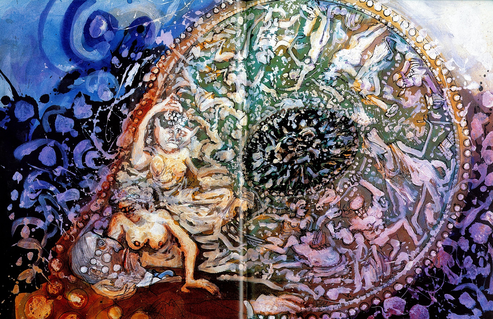 The intricate carvings on the silver are rendered fluid as mercury, slithering off the plates and into the twisted mind of Ford. ‘There was a fierce face with a tangle of hair, a dancing goat with human head, there were men and women and animals of many kinds cavorting around the rim, and no doubt all of them told a story.’ Its a scene you could imagine flowing from the pen of Steadman’s other great collaborator Hunter S. Thompson, sitting immobile in some Las Vegas casino as the drugs begin to take hold.