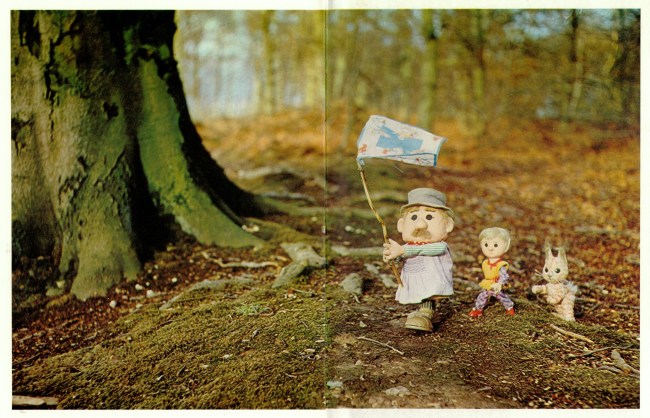 Amongst the good stuff was a regular spot for the witch, a not so forgotten memory for the Pogles it turned out. The 1972 edition featured the story of the Broken Jug, taking us right back to that first story as Pippin discovers fragments of the enchanted jug used by the witch to gain entry to the Pogles’ home. Pippin employs the same logical magic as Mr Pogle, dismissing the memory until she is reduced to a lifeless ornament. In true Smallfilms fashion readers were even given the opportunity to make their own hand puppet witch.