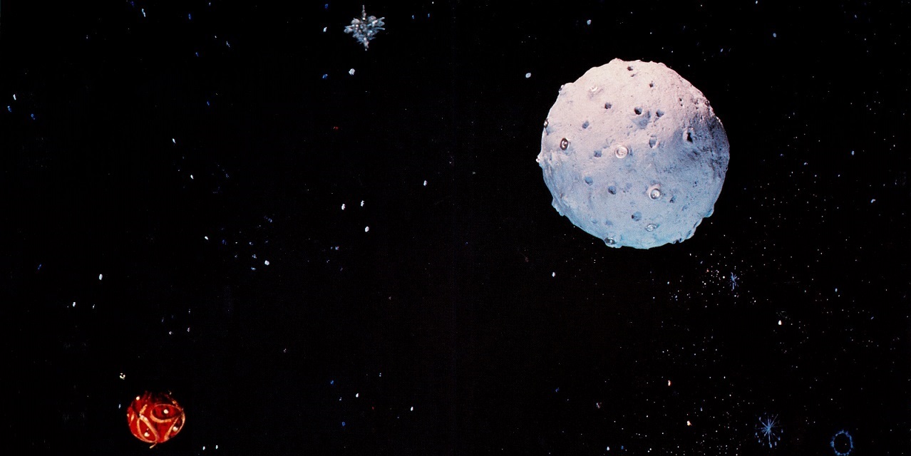 This was a pretty uncompromising idea to plant in the centre of a series which, on the face of it, was cashing in on the wide eyed awe of the space programme. It begins with a shot of the earth (looking remarkably similar to the blue marble photograph taken several years later) and the words: ‘This is the planet earth, our planet. It is a small planet wrapped in clouds and for us it is a very important place, it is home. But supposing we look away from the Earth and travel in our imaginations across the vast and starry stretches of outer space. Then we can imagine other stars, stranger stars by far than ever shone in our night sky, and planets too.’