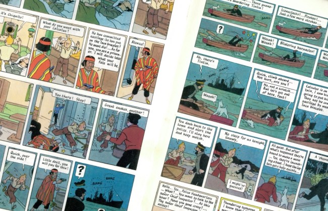 1. Interesting to read about all the history behind it! Most people seem to think the Calculus Affair is the best Tintin book, but they all have something to recommend them. I personally have a soft spot for the Shooting Star — it’s a bizarre story, and he hadn’t yet perfected his artwork, storytelling or characters, but that’s almost why I like it. It’s like some kind of crazy fever dream.