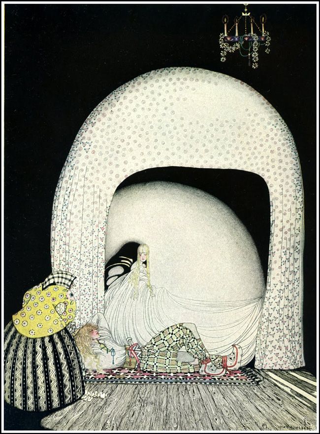 tumblr_lodfw39W8i1ql1jpho1_1280Kay Nielsens East of the Sun, West of the Moon. Hands down, it had completely changed the path of my practice. Every illustration is absolute magic. Nielsen came from a family of theater, and worked on designing the sets. His illustrations work in that dramatic nature- all presented on a rich stage.