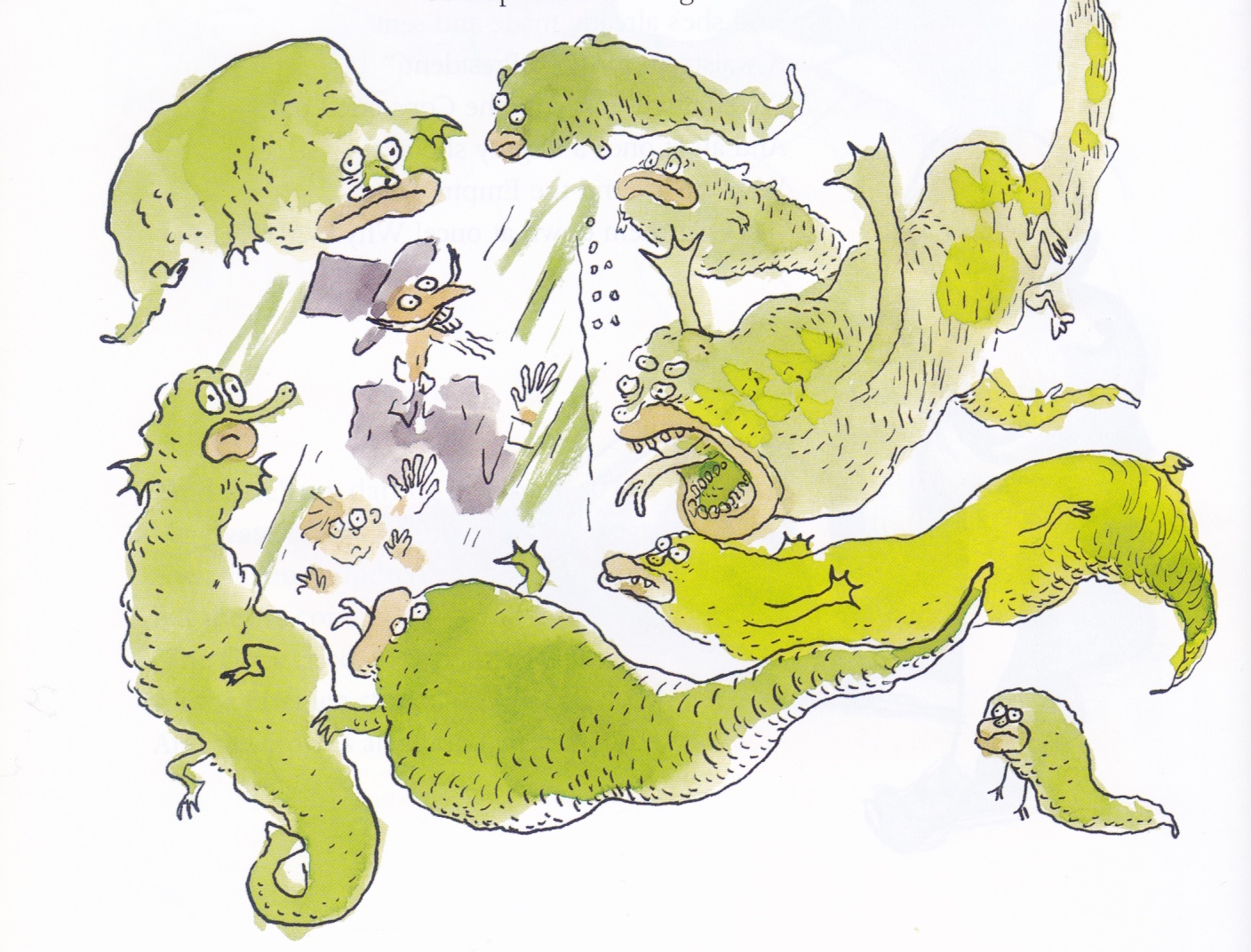 Willy Wonka’s song of Defiance to the Knids illustrated by Joann SfarLater in his career Dahl sensibly reined in the poetry from his novels, finding a far more satisfactory outlet for it in books like Dirty Beasts and Revolting Rhymes. Here they were allowed to breathe, and came sumptuously illustrated by Rosemary Fawcett and Quentin Blake.