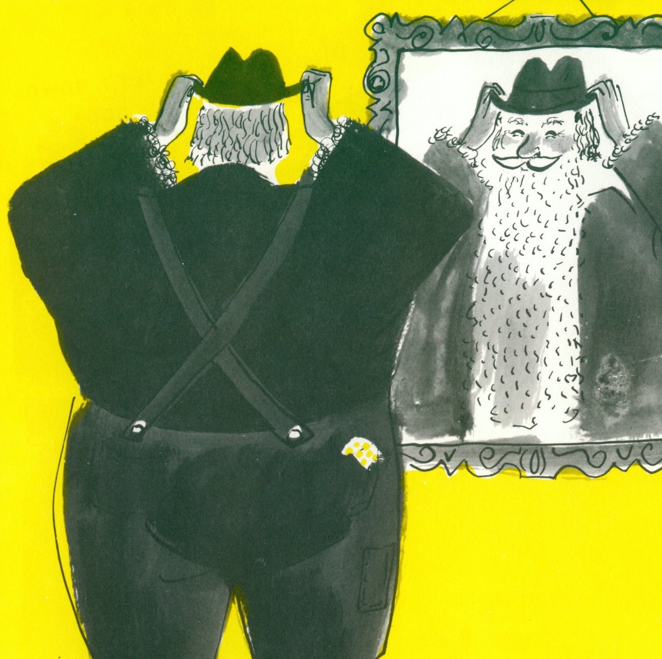 A natty hat and snazzy yellow braces. Although I’m not so sure about the tweed – it makes him look like a travelling salesman. Which in a sense he is.