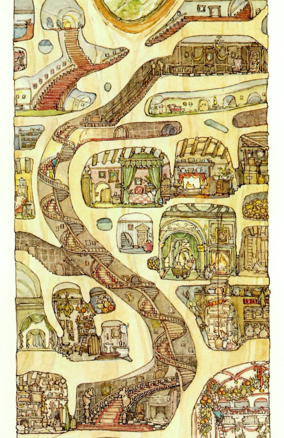 Brambly Hedge is an English Arcadia suffused with the spirit of Beatrix Potter and Arthur Rackham. The Secret Staircase is the fifth story in the series, and the second to feature a winter setting.