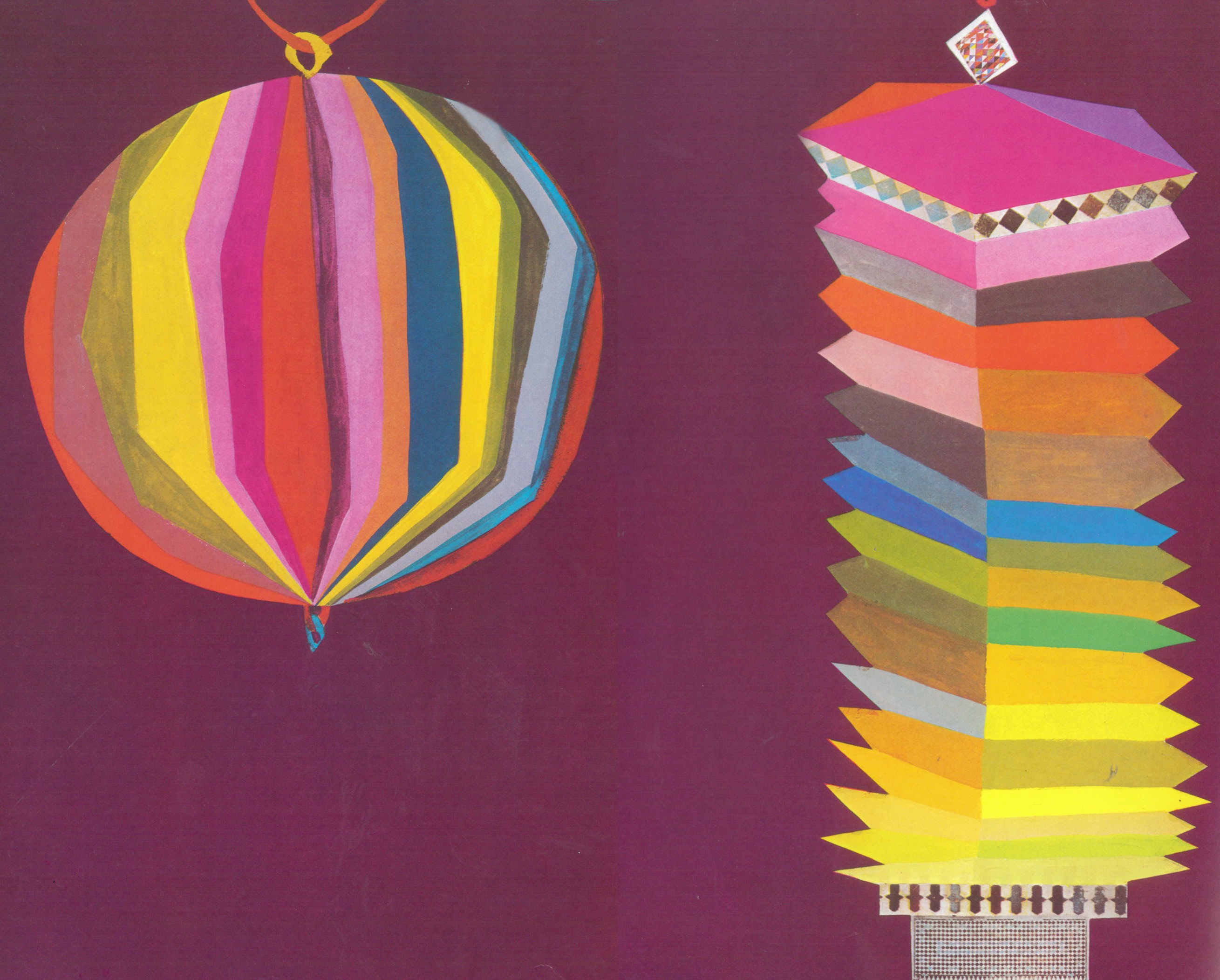 The generous endpapers are a particular treat, depicting an assortment of wonderful Christmas decorations – baubles, bells and paper lanterns – candy coloured and strongly reminiscent of my own 1970s Christmases.