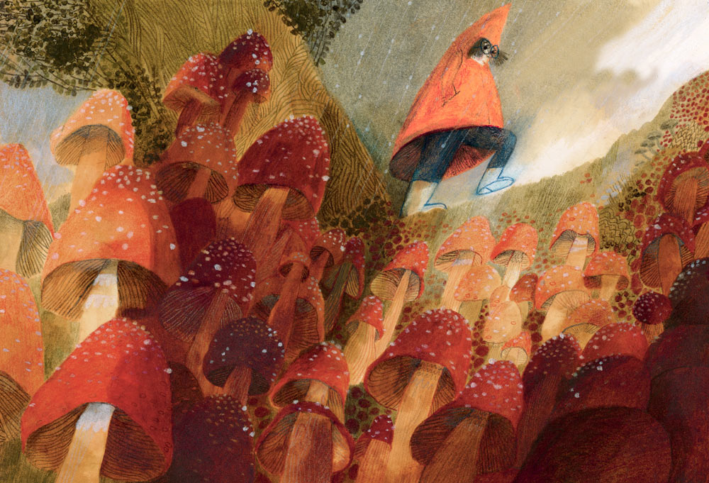 Following 2015’s Home, a series of tableaux of people’s dwellings, Carson Ellis returns with another static picture book, this one focusing on a single scene unfolding over the course of a season. These snapshots are packed with life, as an insect cast puzzles over the arrival of a green shoot, and discuss what to do with it, while a fiddle playing cricket looks on and a cocooned pupa slowly transforms. The twist here is Ellis’s invention of a new nonsense language, part Jaberwocky, part Teletubbies, but entirely understandable for any age.