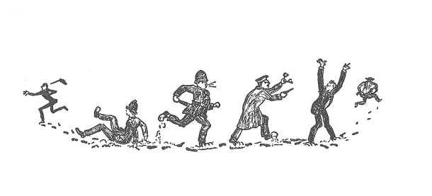 Kay Harker’s guardian might not like it, but John Masefield makes a real feature of these odd little phrases. ‘A tosser to my kick’, for example, is to have no money. Tosser means ‘Coin’, as in the tossing of a coin perhaps. A kick is a trouser leg with an empty pocket. The term that also crops up in Joan Aiken’s Black Hearts in Battersea, appropriately used by the permanently skint Dido Twite, who is playing cards with nothing to gamble. The reason for Kay’s temporary poverty occurs in the previous scene when he is robbed blind by two fox faced card sharks.