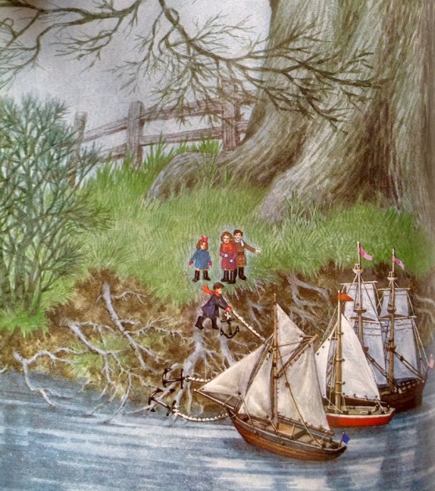 The posset seems to do the job, and Kay and his friends forget all about the kidnapping just long enough to go to the river to sail their new model ships. Having filled half of the barrels with chocolate and biscuits, they choose verisimilitude over taste for the remainder. But Peter’s facts aren’t quite right – pemmican was actually a high energy food eaten by native Americans and made famous in this time period by polar explorers like Scott and Shackleton. It also makes an appearance in Swallows and Amazons, which suggests it was well known among children of the 1930s.