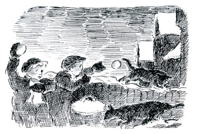 This is a story best read aloud, the words tumble from your mouth, pausing to linger over the startling imagery. It still holds its power to enthral a young audience right from the opening sequence when the boys lay in wait with snowballs for the far too wily local cats.