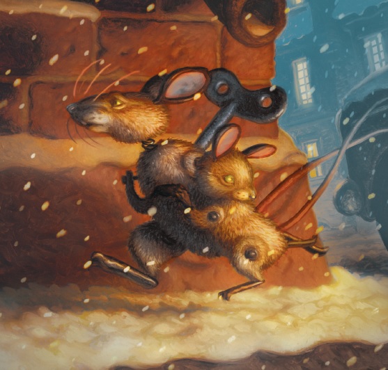 The sight of the ruined dolls house finally shakes father mouse out of his passive state, ‘Ours!’ he said suddenly. ‘Our territory!’ The book ends with a genuinely exciting denouement as the clockwork avengers assemble and storm the house.