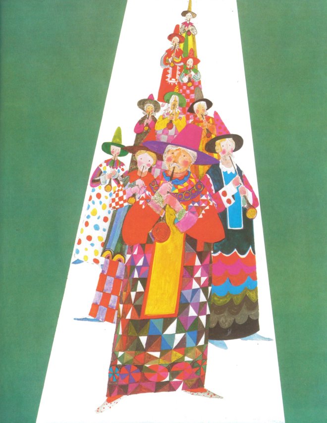 Here he turns to a Christmas song, the Twelve Days of Christmas, and creates a picture book with echoes of his first title, Brian Wildsmith’s ABC. Although not quite as wordless as that groundbreaking publication, it is still the pictures that do most of the talking here.