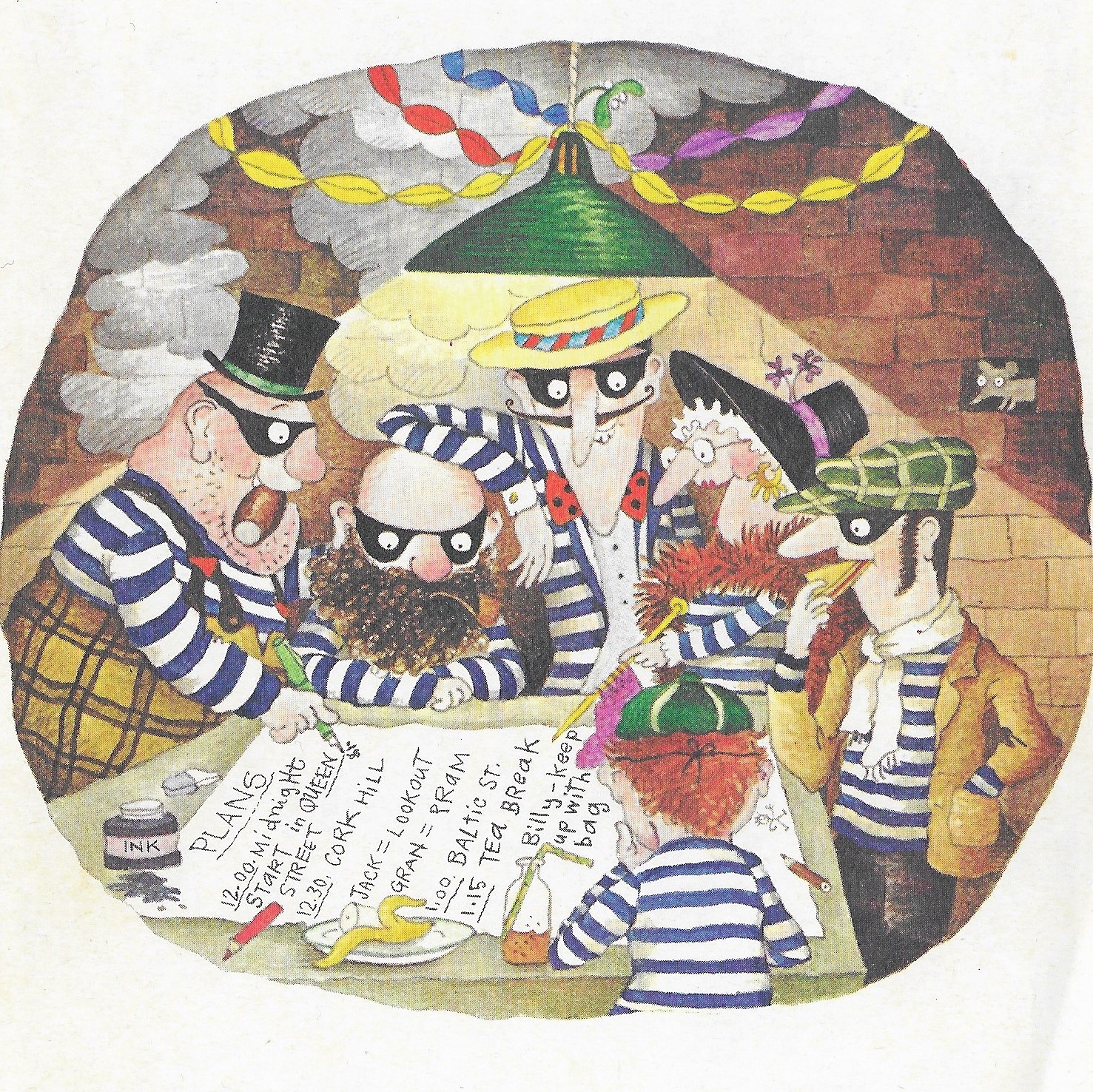 The outstanding British contribution to this warped tradition is Janet and Allan Ahlberg’s Cops and Robbers. The great couple of children’s literature have previous with housebreaking; their Burglar Bill book is a classic romantic comedy. But where Bill and his squeeze Burglar Betty find redemption through love and return their presents, this tale has a cast of unrepentant bad guys in the Ealing comedy mould. They come with classic Ahlberg names like Grabber Dan, Billy-the-Bag and best of all crime Queenpin, Grandma Swagg.