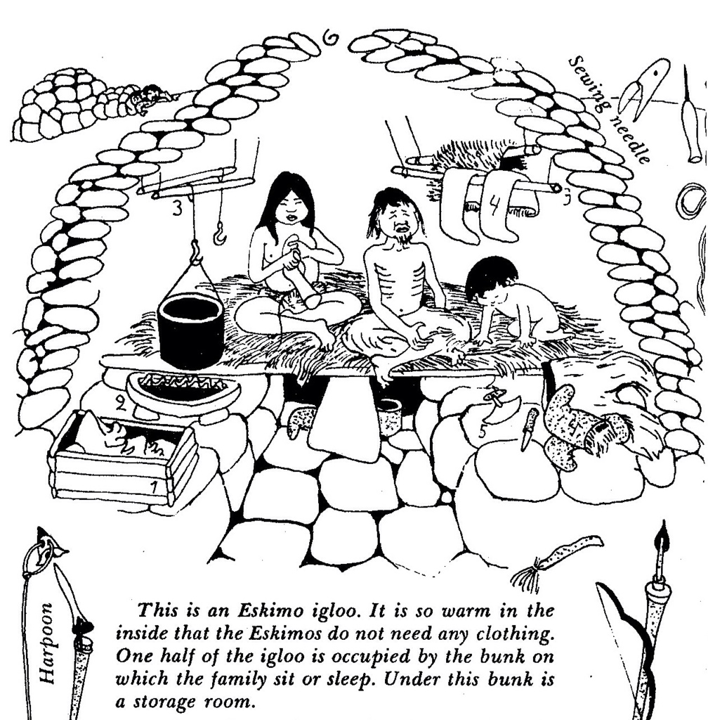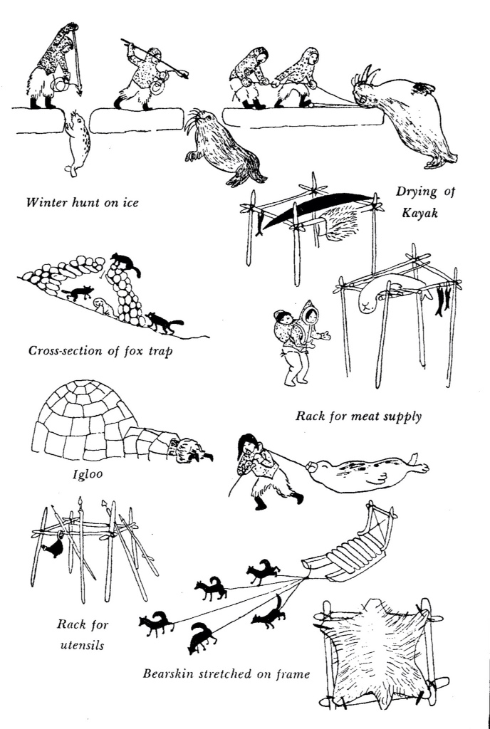 The detailed research is showcased in several pages which lay out the various hunting methods of the Inuit. We learn exactly the best way to kill, skin, cook and eat foxes, seals, bears and anything else that’s unfortunate to come into contact with the Inuit.